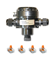 | BOX-DX2 | Compact junction box with dual M16 cable entries. For mounting on Ø12mm pipes. Includes 4 spring clamps. Protection class IP67. |  |