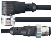 Connector cable. M12 angled female and M12 straight male, 3-pin, 5 meters PUR cable. | M12, 3-pol-M12, 3-pol | 5 meter