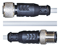 Connector cable. M12 straight female to M12 straight male, 4-pole, 1 meter PVC cable. | M12, 4-pol-M12, 4-pol | 1 meter