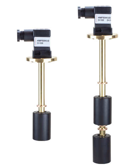 | HMF50HI-V | Nivåvakt med en larmnivå. Vinklad DIN-kontakt, som kan monteras i fyra riktningar. Kompakt modell med Ø50mm metallfläns. Prob i mässing och flottör i Buna-N. Lämplig för olja och andra icke aggressiva vätskor. | V | DIN- kontakt 43650 | 60VA 3-230V 1A | ![]() |